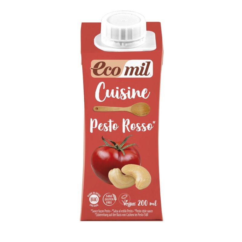 Salsa Cuisine Pesto Rojo 200 ml Ecomil es una bebida de pesto rosso para cocinar, alternativa a las natas o cremas de soja.