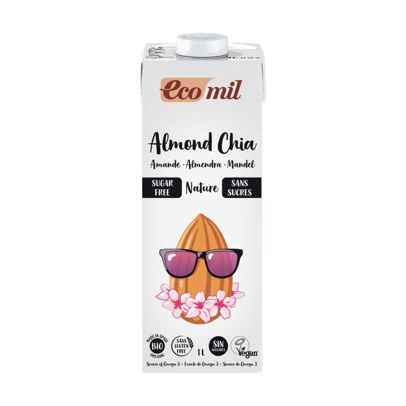 Bebida de almendra con semillas de chía bio sin azúcares. Fuente de Omega3