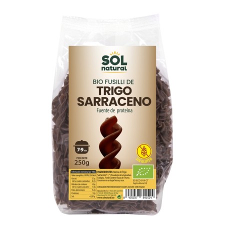 Fusilli de Trigo Sarraceno Bio sin Gluten 250gr Sol natural es un tipo de pasta sin gluten y procedentes de la agricultura ecológica, han sido elaborados sin adictivos ni productos químicos, por lo que podrás mantener una dieta sana, variada y equilibrada.