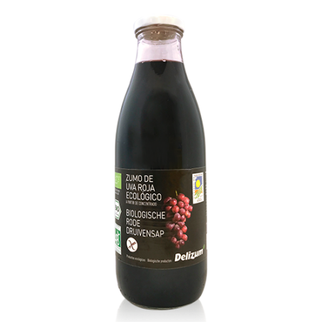 Zumo uva negra Bio 1 litro Delizium es un zumo elaborado a partir de concentrado de uva roja ecológico.