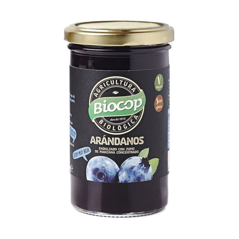 Compota Arándanos Vegano, elaborada con arándanos de agricultura ecológica mediante cocción mínima para garantizar todo el sabor y aroma de la fruta. Endulzado con concentrado de zumo de manzana. Sin azúcares añadidos. Sin gluten. Apta para veganos