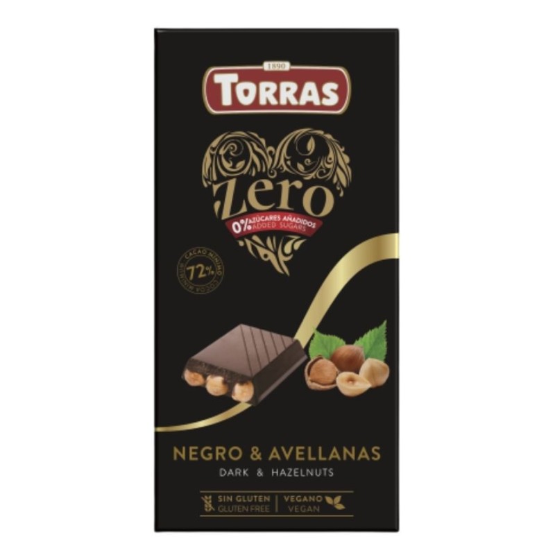 Chocolate Negro con Avellanas 72% Cacao de Torras, delicioso chocolate para los amantes del cacao, con un toque suave y amaderado otorgado por las avellanas.