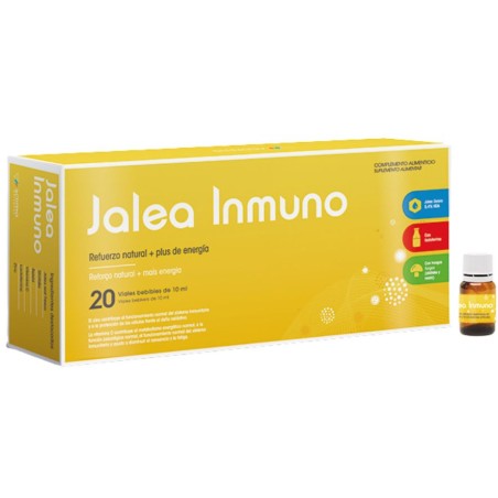 Jalea Inmuno 20 Viales Herbora, es un complemento alimenticio que favorece el correcto funcionamiento del sistema inmunológico y aporta un extra de energía. Jalea Inmuno es un producto diseñado para estimular las defensas y tenerlas siempre a punto ante cualquier signo de posible infección.
