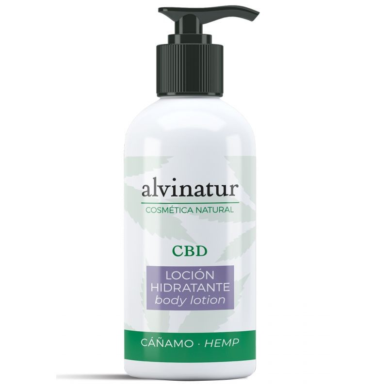 Loción hidratante CBD. Formulada con aceite de Cáñamo, aceite de Almendras dulces, aceite de Oliva, Manteca de Karité y Aloe Vera y alto contenido en CBD y aceite esencial de Lavanda.