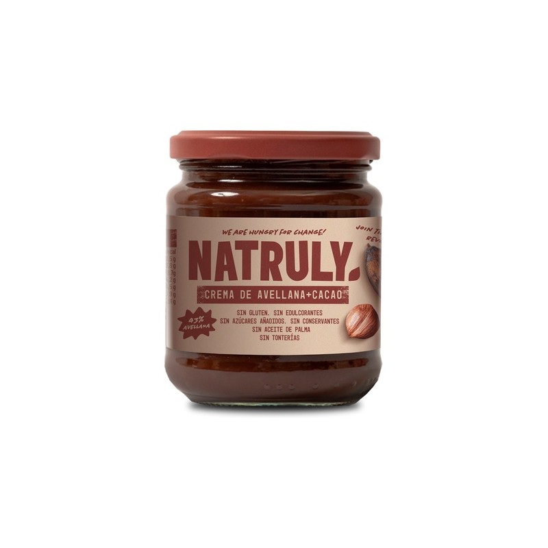 La única crema de cacao que no contiene azúcar ni edulcorantes y consigue tener el sabor tradicional de la crema de avellanas y cacao. Natruly endulza su crema con fibra de achicoria para que así cualquiera pueda disfrutar del sabor del chocolate y las avellanas de forma natural y 100% saludable.