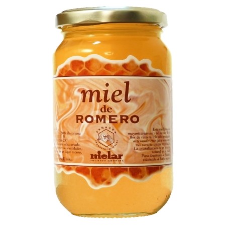 Miel Romero 500g Arnauda Mielar es un alimento que se cosecha en los romerales de clima mediterráneo de Aragón, Catalunya, etc... Es blanca o ligeramente ambarina al cristalizar y bastante transparente líquida. Muy aromática y de sabor delicado, es apropiada como estimulante del hígado y del aparato digestivo.