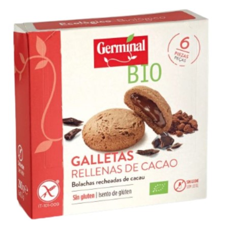 Galletas rellenas de crema de cacao elaboradas sin leche y con ingredientes de cultivo ecológico. Ideales para los amantes de los productos delicatessen gracias a su doble ración de cacao. Certificadas como Gluten Free.