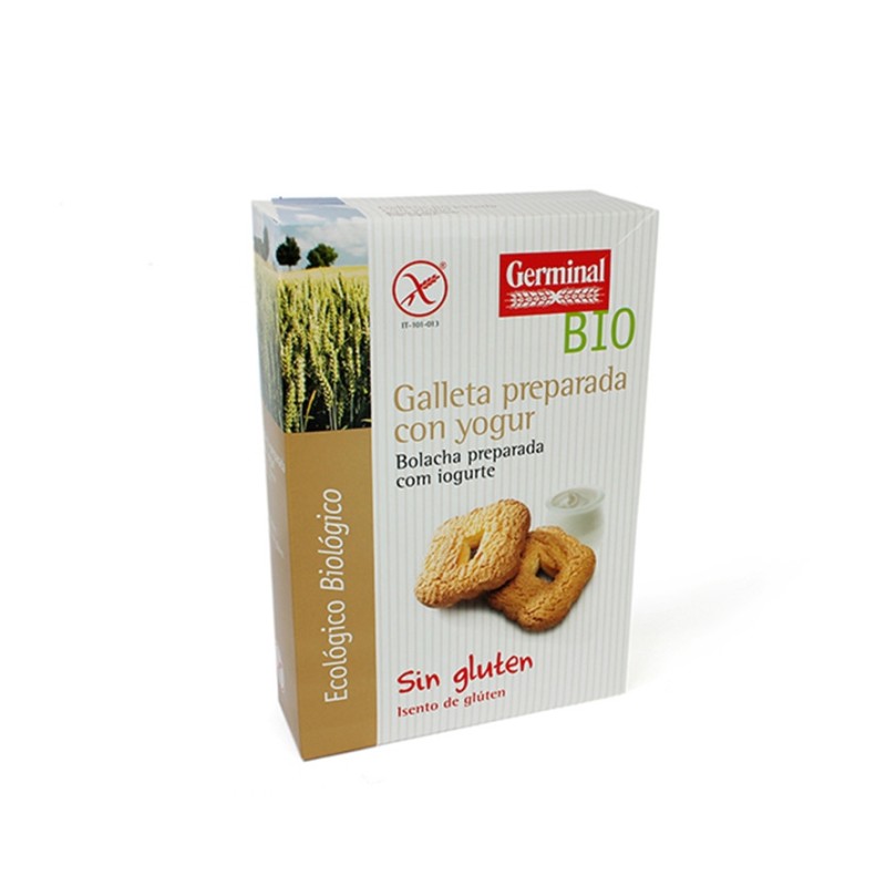Galletas preparadas con yogur elaboradas con ingredientes de cultivo ecológico. Sin gluten e ideales para combinar con cualquier tipo de bebida.