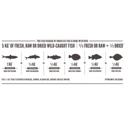 ORIJEN SIX FISH está preparado con pescados enteros frescos y aporta una rica fuente concentrada de prácticamente cada nutriente que su perro necesita para vivir saludablemente, de manera natural sin largas listas de suplementos sintéticos. Se agregan sólo zinc